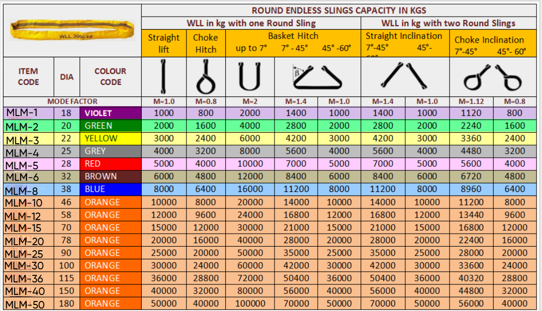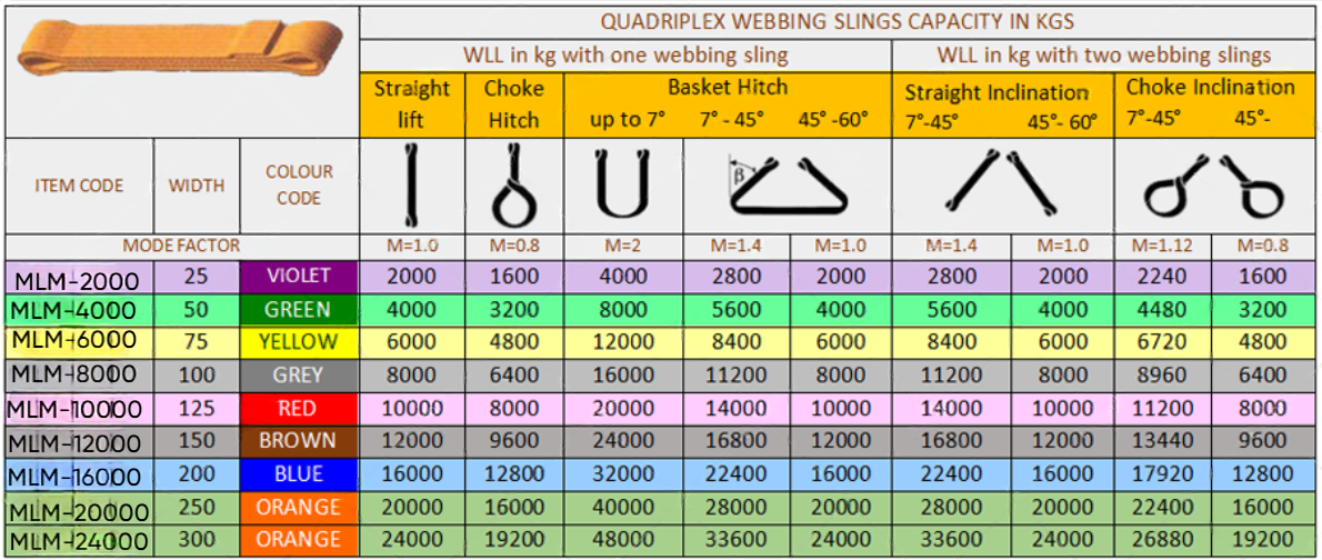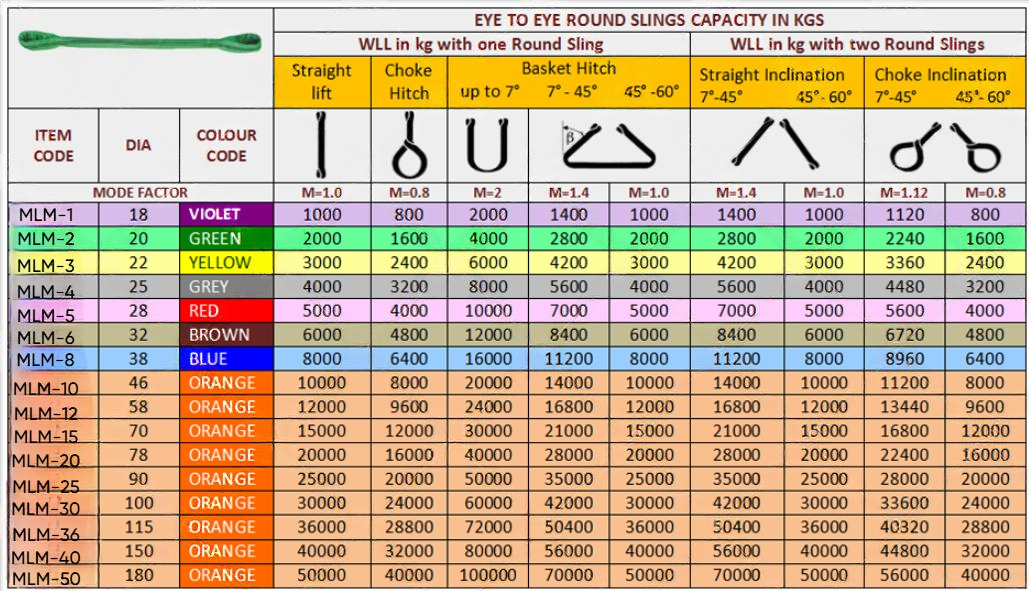 - According to EN-1492-1:2000 or ASME B 30.9 & IS:15041.