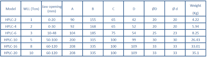 Horizontal clamps are designed to lift and transport steel plates in the horizontal position up to a hardness of 30 HRC providing the plate can withstand the forces imposed. Caution should be used so that maximum single angle is not exceeded, and horizontal lifting clamps must always be used in pairs.